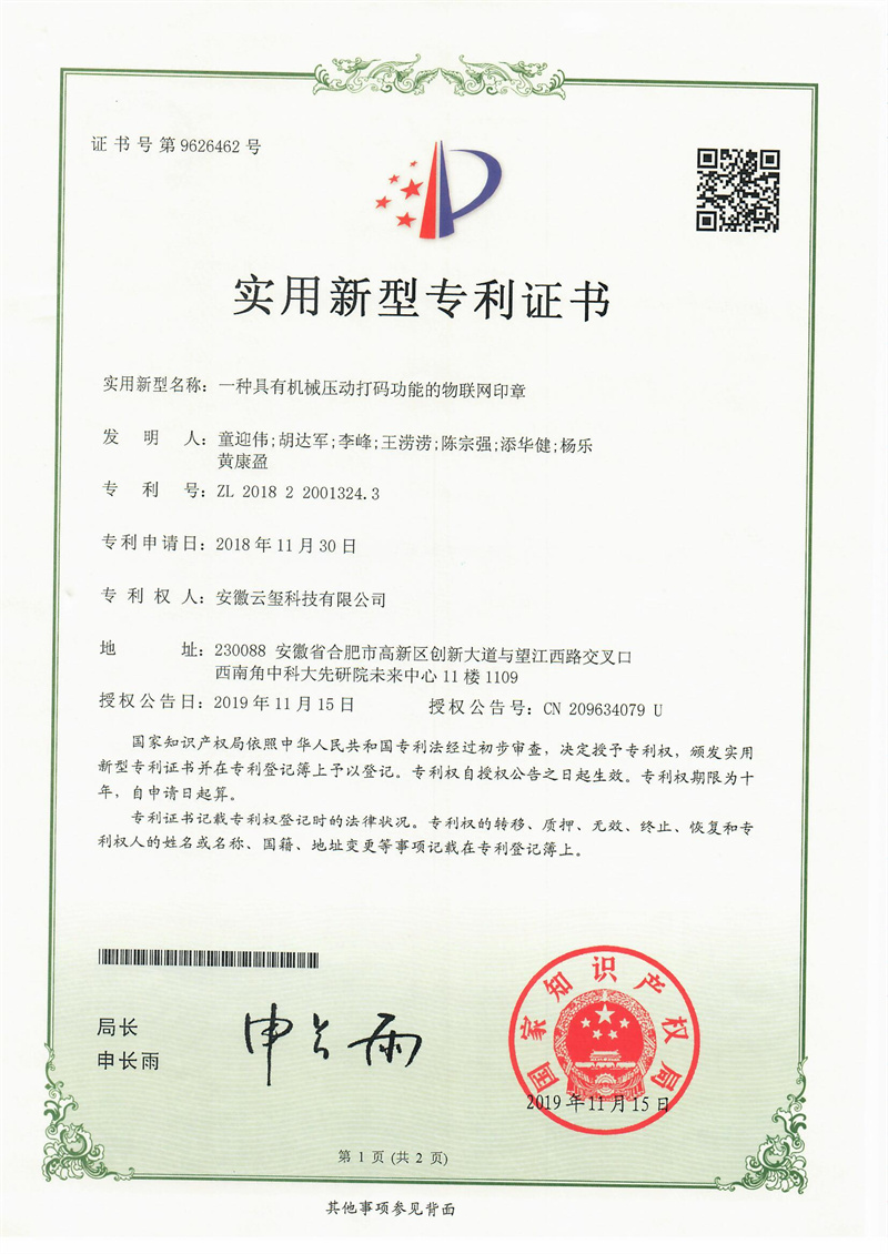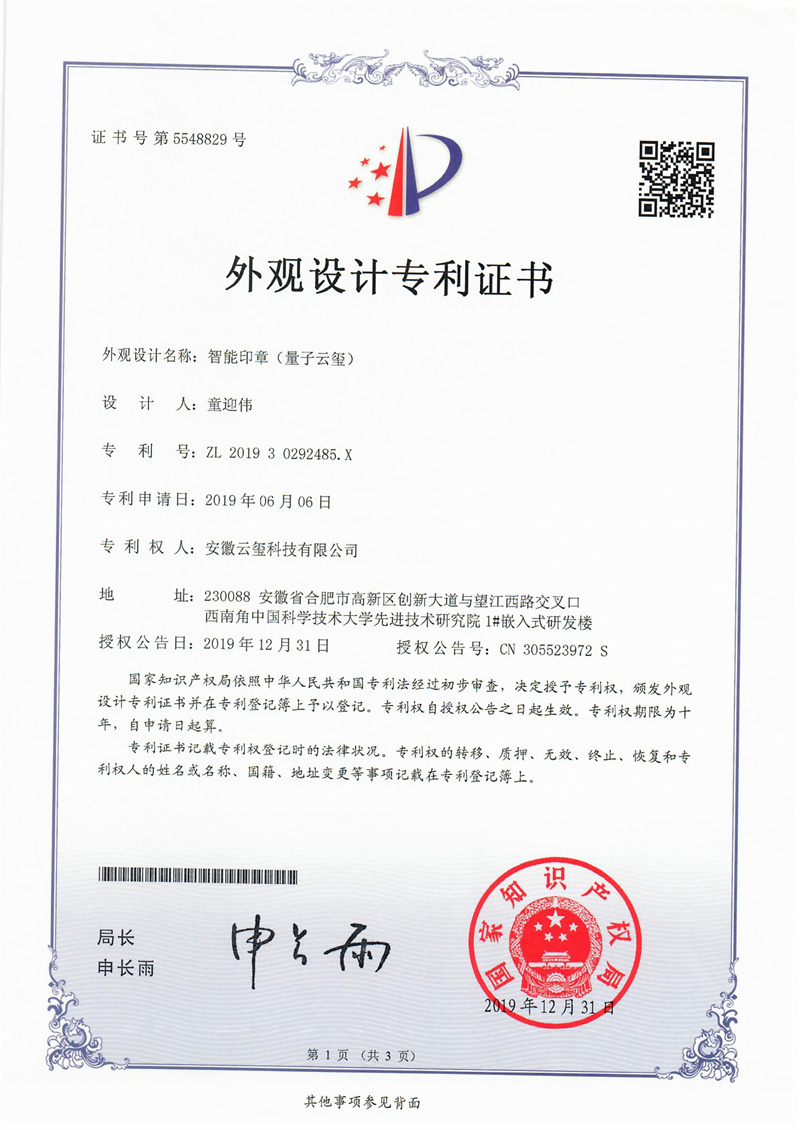 公司原創(chuàng)發(fā)明一體式智能印章技術,引領國內外新一代智能印簽創(chuàng)新變革。獲中日韓多項發(fā)明專利,徹底解決了實體印章和電子印簽管控的社會難題,獲國務院國資委全國央企熠星二等獎。公司聯(lián)合國家信息安全產品認證中心、公安部三所、信通院、中國印章協(xié)會等,主導起草了行業(yè)首個智能印章安全認證標準和智能印章產品標準,引領了智能印章行業(yè)發(fā)展。